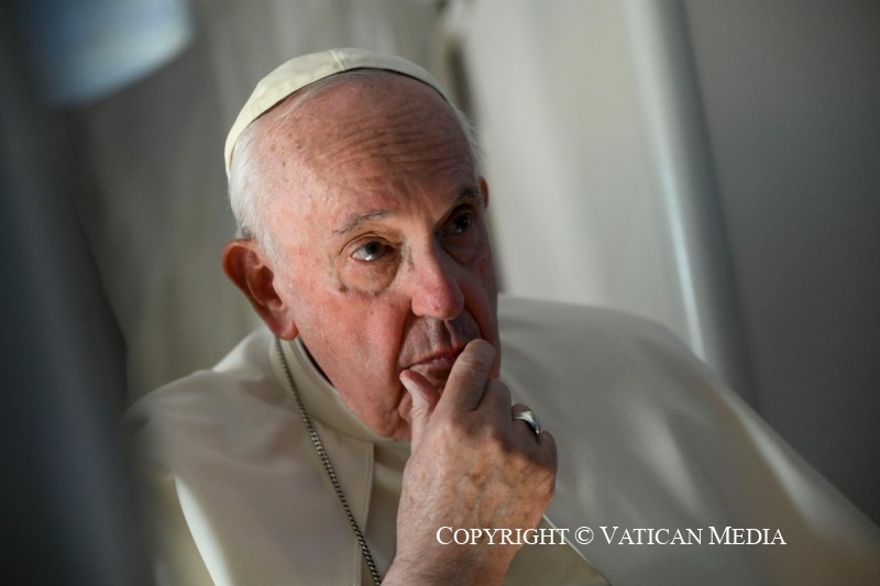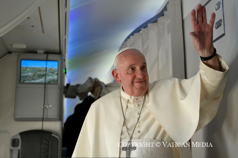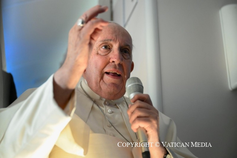 – Szentatya, ezen az úton az egyetlen alkalom, amikor Ön rögtönözve beszélt, az volt, amikor a „meggyötört Ukrajnára” és a „béketárgyalásokra” utalt. Szeretném megkérdezni, tud-e valamit mondani nekünk arról, hogyan haladnak ezek a tárgyalások a Vatikán részéről; és egy másik kiegészítő kérdés: beszélt-e mostanában Putyinnal, vagy szándékozik-e beszélni vele a közeljövőben?