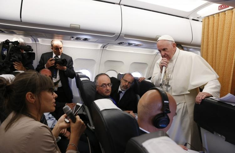 – Köszönjük, Szentatya! Vannak itt olyan újságírók, akiknek ez az első útjuk, de vannak olyanok is, akik már majdnem századik, sőt több mint századik útjukon vettek részt. Ön… nem is tudom, Ön hány nemzetközi utazást tett…