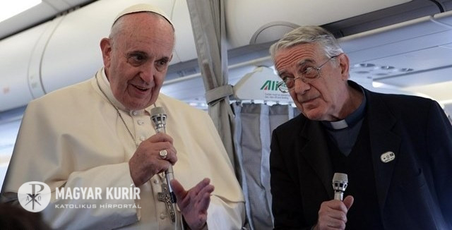 A sajtótájékoztató kezdetén Federico Lombardi szentszéki szóvivő Ferenc pápához fordulva kifejezte elismerését a Szentatya két fontos beszéde kapcsán, majd átadta a szót az újságíróknak.