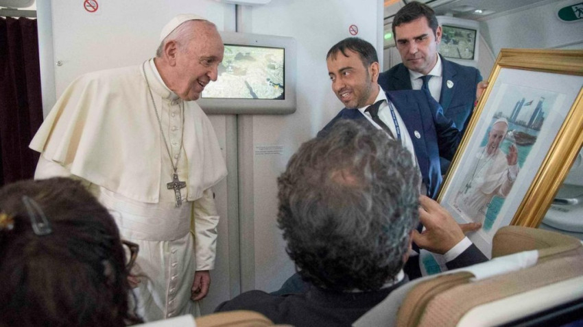 – Szentatya egy olyan kérdés, amely valójában a kollégám által feltett kérdéshez kapcsolódik, mert nem volt időnk egyeztetni. De, amint mondtam Önnek a legutóbbi utazás során, lehetőségem volt interjút készíteni Moszul érsekével Irakban, aki mindig azt mondja, hogy várják Önt, és tagadja, hogy erről a püspökök beszélnének, hanem egyszerűen csak várják. Ön beszélt a vallásszabadságról, azt mondta, hogy a vallásszabadság túlmutat az istentiszteleti szabadságon. Mondana egy kicsit többet erről a témáról? Mert ma elmentünk, illetve épp visszatérünk egy olyan országból, amely a toleranciájáról ismert, mégis, a katolikusok közül sokan, akik ma ott voltak a sportközpontban [a misén], amióta megérkeztek az Egyesült Arab Emírségekbe, először csak ma mutathatták meg nyilvánosan hitüket és hiedelmeiket. Tehát történhet-e olyan változás, amely egyszerűen túlmutat a mai napon?