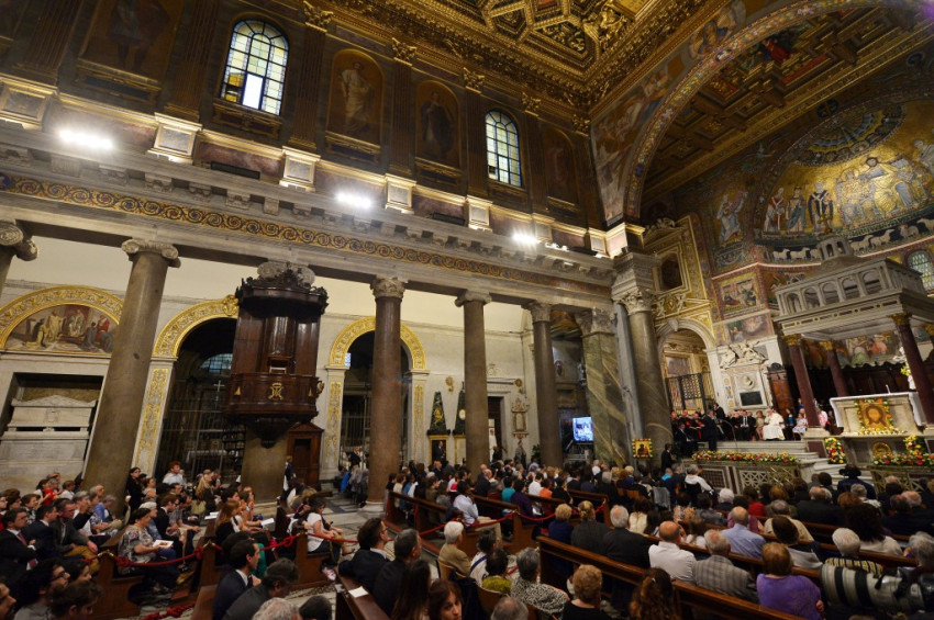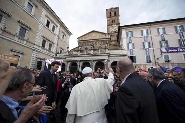 Az egyházfő a megszokott Ford Focus autóval tette meg a Vatikán és a római Trastevere városnegyed közötti néhány perces utat. Miután kiszállt az autóból, gyalog közelítette meg a Santa Maria in Trastereve-bazilikát. A templom előtti téren húsz perc alatt tudott átjutni, annyian akarták köszönteni őt. A jelen lévő muzulmánok azt kiáltották a pápának, köszönik neki a Vatikánban június 8-án tartott izraeli-palesztin békeimát.