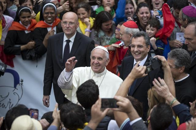A Szent Egyed Közösség római központjával szomszédos Santa Maria in Trastevere téren több ezren várták Ferenc pápát, aki gyalog vágott át a tömegen. Többek között egy roma kislánnyal, egy kilencvenéves asszonnyal és bevándorlókkal beszélgetett el, akiket a közösség segít.