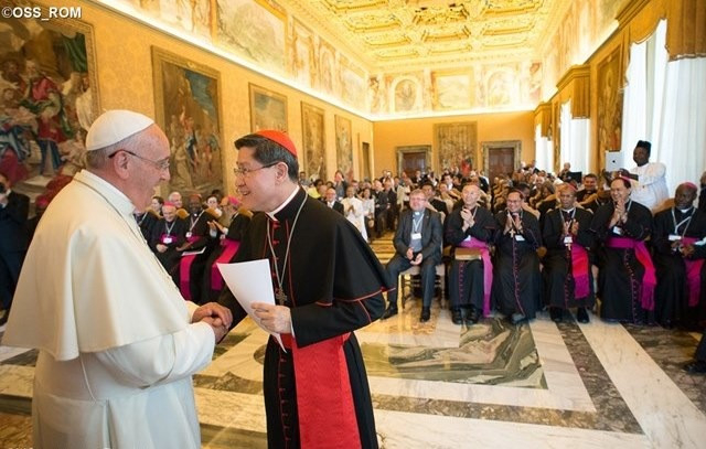 A Szentatya köszöntötte a Fülöp-szigeteki Tagle bíborost, a szövetség új elnökét, és egyúttal köszönetet mondott Vincenzo Paglia bíborosnak eddigi fáradozásáért a szövetség élén.