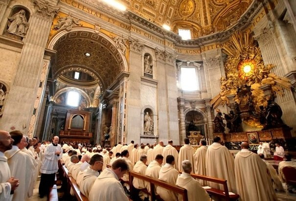 Második szempont a közösség szolgálata: olyan papnak kell lenni, aki a mai világ pusztájában képes felemelni az üdvösség jelét, Krisztus keresztjét: mint a megtérés és a megújulás forrását – mondta a pápa. Külön kiemelte, hogy a meghalt és feltámadt Úr az az erő, mely közösséget teremt az Egyházban és az Egyház által az egész emberiségben.