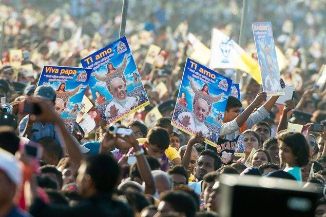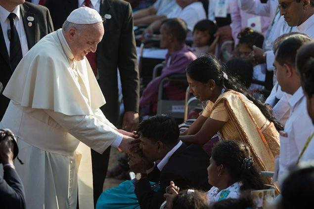 A dél-indiai Goa tartomány szülötte, Vaz Szent József oratoriánus szerzetes a misszionárius buzgóság és az itteni lakosok iránti nagy szeretet indíttatására érkezett az országba. Az akkori vallásüldözés miatt koldusnak öltözött, papi kötelezettségeit titokban végezte, amikor a hívekkel találkozott, gyakorta éjjel. Erőfeszítései lelki és erkölcsi támogatást jelentettek az üldözött katolikus lakosságnak. Különleges vágya volt, hogy a betegeket és szenvedőket szolgálja. A Kandy városban dúló himlőjárvány idején betegápoló szolgálata kiváltotta a király megbecsülését is, aki nagyobb szabadságot adott számára szolgálata betöltéséhez. Így aztán Kandyból kiindulva tudta elérni a szigetország más területeit. Élete felemésztődött a misszionárius munkában, és végső kimerültségben halt meg 59 éves korában, amikor már szentként tisztelték. Vaz Szent József továbbra is példa és mester marad sok szempontból, ezek közül háromra szeretnék összpontosítani – folytatta beszédét a pápa.