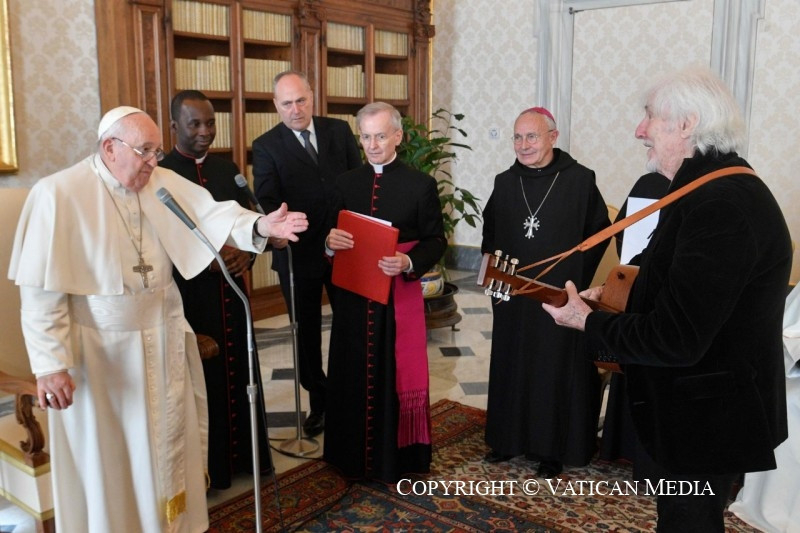 Végül a pápa arra buzdította az egyesület tagjait, hogy legyenek a népek, a kultúrák és a vallások közötti harmónia énekesei, ami most különösen fontos az emberiséget megrázó erőszak, háborúk, társadalmi válságok világában. Ráadásul ma sürgető szükség van az ember és környezete harmóniájának újjáteremtésére. A művészet ugyanis nagyon erőteljes eszköz arra, hogy közvetítse a természet szépségének üzenetét – fejtette ki Ferenc pápa.