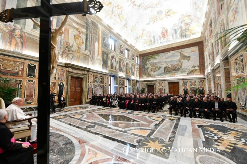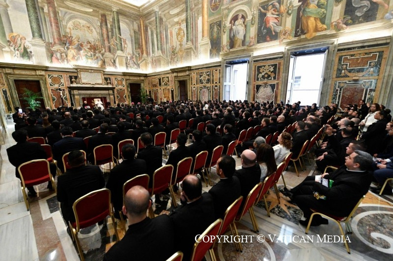 A Szentatya buzdította a kollégiumokban tanulmányaikat végző papokat és szeminaristákat: „Ne becsüljétek alá a közbenjárók imáinak erejét, akiket Isten helyez az utunkba; akik képeznek benneteket, akik paptársaitok, akik legszorosabb környezetetekben élnek. Bízzatok az imában, amelyet Isten hűséges népének valamennyi tagja intéz az Úrhoz, és ne feledjetek el imádkozni pásztoraikért és értem, a pápáért. Jézus áldjon meg benneteket és a Guadalupei Szűz Mária, Amerika patrónája őrizzen meg titeket!” – búcsúzott Ferenc pápa a pápai kollégiumok közösségétől.
