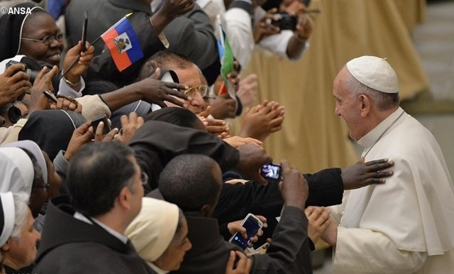 A találkozó résztvevői április 11-én, szombaton délben Ferenc pápával találkoztak a vatikáni VI. Pál-teremben. A Szentatya hozzájuk intézett beszéde elején nevetve megjegyezte, hogy amikor hallotta, hányan lesznek, azt gondolta: furcsa, hogy több a nevelő, mint a szerzetes. Komolyra fordítva a szót a pápa kiemelte, hogy a szerzetesi hivatások komoly számbeli csökkenésének vagyunk tanúi, és ez még inkább sürgeti a nevelők feladatát annak érdekében, hogy a fiatalok szívében Jézus szíve valósuljon meg.