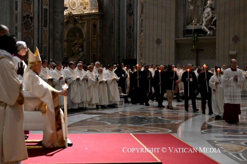 Testvéreim, ezek a kérdések nekünk, valamennyiünknek, közösségeinknek, az Egyháznak szólnak. Engedjük, hogy elvegyék nyugodtságunkat, engedjük, hogy megmozdítson bennünket a Lélek, mint Simeont és Annát! Ha a várakozást hozzájuk hasonlóan a lelki élet őrzésével és az evangéliumi életmóddal összhangban éljük meg, akkor mi is karunkba vehetjük majd Jézust, az élet világosságát és reményét.