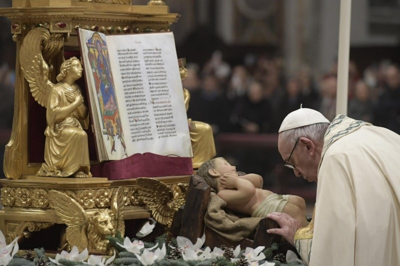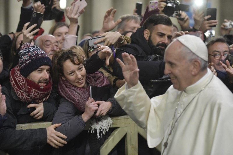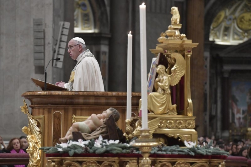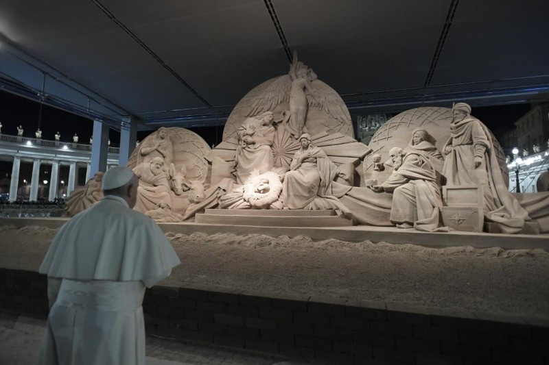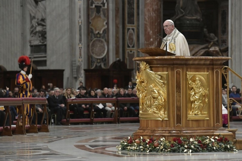 Városunkban is, Rómában, vannak fivéreink és nővéreink, akik különböző okokból ebben az állapotban vannak. Különösen azokra gondolok, akik lakóhely nélkül élnek. Több mint tízezren vannak. Télen különösen nehéz a helyzetük. Ők mind Isten fiai és lányai, de a rabszolgaság különböző, néha nagyon bonyolult formái odajuttatták őket, hogy az emberi méltóság peremén éljenek. Jézus is hasonló állapotban született, de nem véletlenül vagy baleset folytán: így akart születni, hogy kinyilvánítsa Isten szeretetét a kicsiknek és a szegényeknek, és így elvesse a világba Isten országának a magját, az igazságosság, a szeretet és a béke országáét, ahol senki sem rabszolga, hanem mindenki testvér, mindnyájan az egyetlen Atya gyermekei.