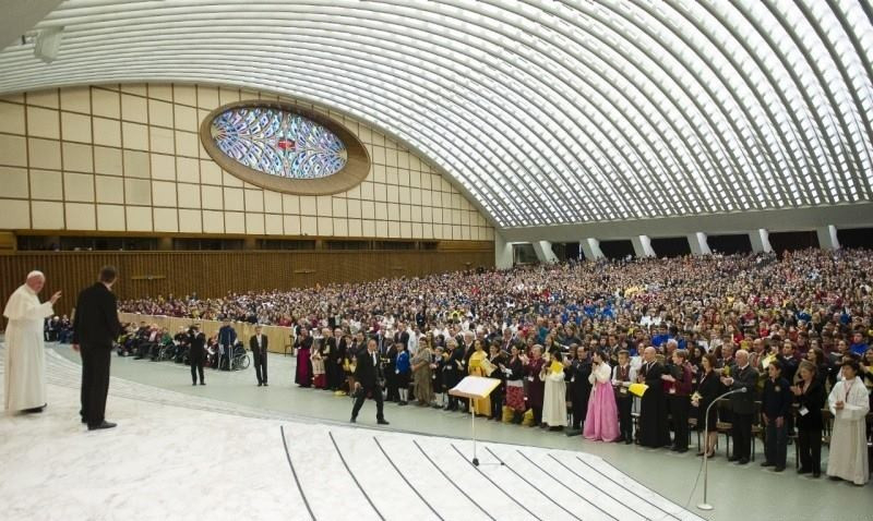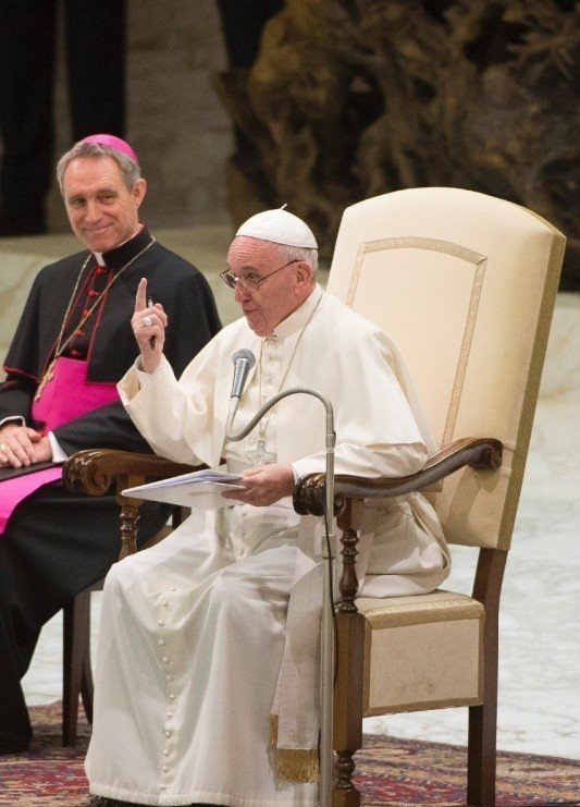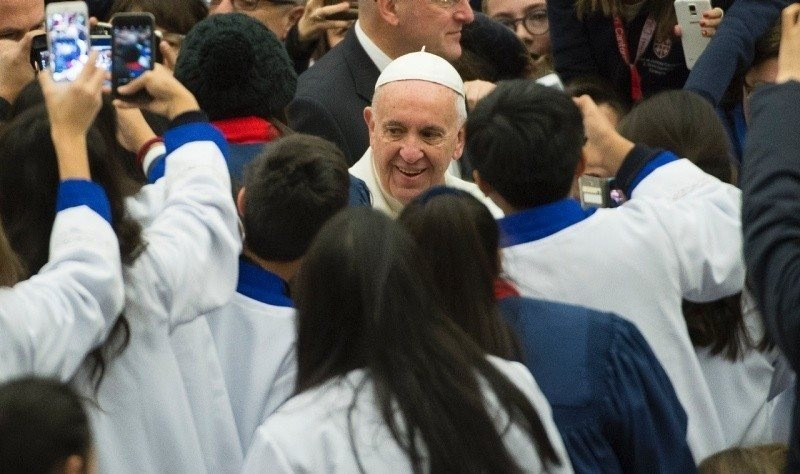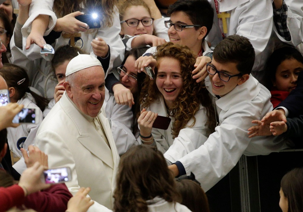 A világban észrevehetően küzd egymással a jó és a rossz: Isten és az ördög. Ez kicsiben bennünk is zajlik, amikor egy belső hang rosszra csábít minket. A háború Isten igazsága ellen való, az élet, az öröm igazsága ellen. Ez a harc azonban a Biblia szerint mindvégig fennáll. Másfelől pedig nem igaz, hogy csak negatív dolgok történnek a világban, erről azonban a televízió nem beszél, nem mutat képeket. Talán mert unalmas, mert nem hoz akkora nézettséget, mint a rossz hírek. Egy boldog család, ahol a szülők szépen nevelik a gyerekeiket, az idős nagymama, aki békében tűri a betegségét, a sok jó ember, akik a rászorulókon segítenek, miért nem jelenik meg a képernyőkön? Talán érdekesebb a drága ékszer, amit egy fontos cég reklámoz? Ne hagyjuk magunkat megtéveszteni! A világban sok rossz van, ez az ördög műve Isten ellen. De sok szent dolog is van, ezek Isten művének nagyszerű jelei. Ne feledjük el, hogy köztünk élnek a „rejtett szentek”, akiket nem látunk. Most pedig még énekeljetek nekem! – kérte a nemzetközi kórustalálkozó résztvevőit a pápa, aki áldásával és újévi jókívánságaival búcsúzott a „Pueri Cantorum” 6000 tagjától.