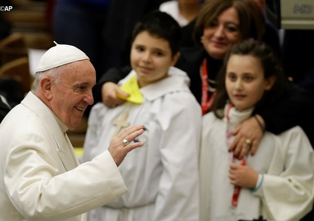 Egy kisgyerek arról faggatta a pápát, hogy lehet mindig ilyen jó, hogy lehet, hogy sosem haragszik? Erre a Szentatya így válaszolt: egyszer Jézushoz odament egy ifjú és jó mesternek nevezte őt. Jézus ekkor ránézett és azt mondta: Nem, csak Isten jó. Akkor mi rosszak vagyunk? – kérdezhetitek. Nem, fele-fele, jók és rosszak egyaránt. Tudjátok, hogyan leszek kicsit jobb? Ha kérem Istent: „Uram, add, hogy ne legyek annyira bűnös, hogy ne legyek olyan rossz, hogy ne ártsak senkinek, ne legyek irigy, féltékeny másokra, hogy ne keveredjek érdekszövetségekbe, amikből oly sok van.” Ezt a kegyelmet kell kérnetek nektek is. De vannak ám jó emberek, ők a szentek, akik közelednek az Úrhoz. Sok szent rejtőzik körülöttünk a hétköznapokban, aki szenvednek és szenvedésüket felajánlják a bűnösök megtéréséért. De csak Isten jó egyedül.