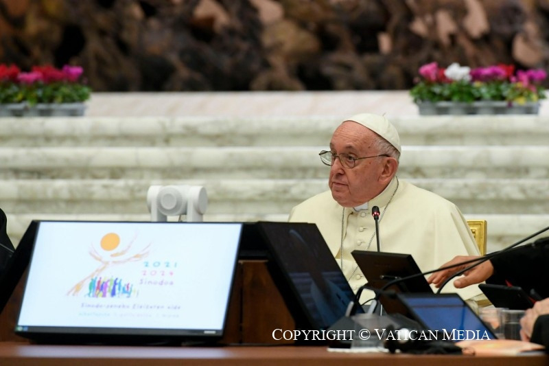 Aztán azt szeretném mondani, hogy ezen a szinóduson – azért is, hogy teret adjunk a Szentléleknek – a meghallgatásnak van prioritása, van ez a prioritás. És üzenetet kell adnunk a sajtó munkatársainak, az újságíróknak, akik nagyon szép, nagyon jó munkát végeznek. Pontosan olyan tájékoztatást kell adnunk, amely tükrözi ezt a Szentlélekben való életet. Aszkézisre van szükségünk – elnézést, hogy így beszélek az újságírókhoz –, a nyilvános szó egyfajta böjtjére, hogy ezt megőrizzük. És amit közzétesznek, az ebben a légkörben legyen megfogalmazva. Egyesek azt fogják mondani – mondják is –, hogy a püspökök félnek, és ezért nem akarják, hogy az újságírók leközöljék. Nem, az újságírók munkája nagyon fontos. De segítenünk kell nekik, hogy ezt mondják, ezt a Lélekben való járást.