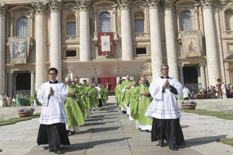 Adja meg nekünk a Lélek annak kegyelmét, hogy az álmoknak és a reménynek az ajándékával felkent szinódusi atyák legyünk, hogy mi is fel tudjuk kenni fiataljainkat a prófétálás és a távolra látás képességével! Adja meg nekünk annak kegyelmét, hogy tevékeny, élő, hatékony emlékezet legyünk, mely nemzedékről nemzedékre nem engedi, hogy elfojtsák vagy elűzzék a csapást és vészt jósló próféták, sem önnön korlátai, hibái és bűnei, hanem képes teret találni a szívek lángra gyújtására és a Lélek útjainak felismerésére! A Lélek hangjára figyelő, tanulékony hallgatás magatartásával gyűltünk most össze a világ minden tájáról. Ma, első alkalommal itt van velünk két püspöktestvérünk is, a kontinentális Kínából. Fogadjuk őket meleg szeretettel: jelenlétüknek köszönhetően a püspököknek Péter utódával való egysége most még láthatóbb. [Tapsolnak.]