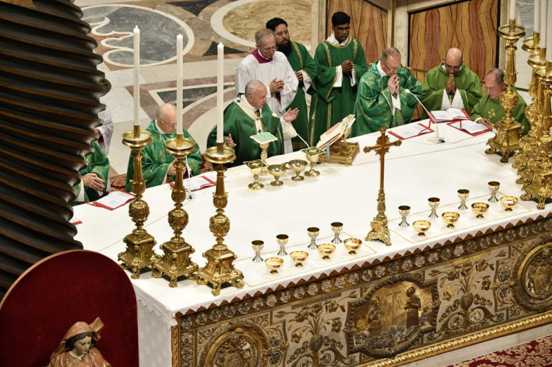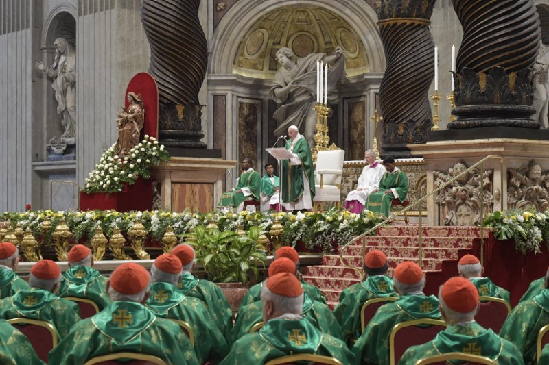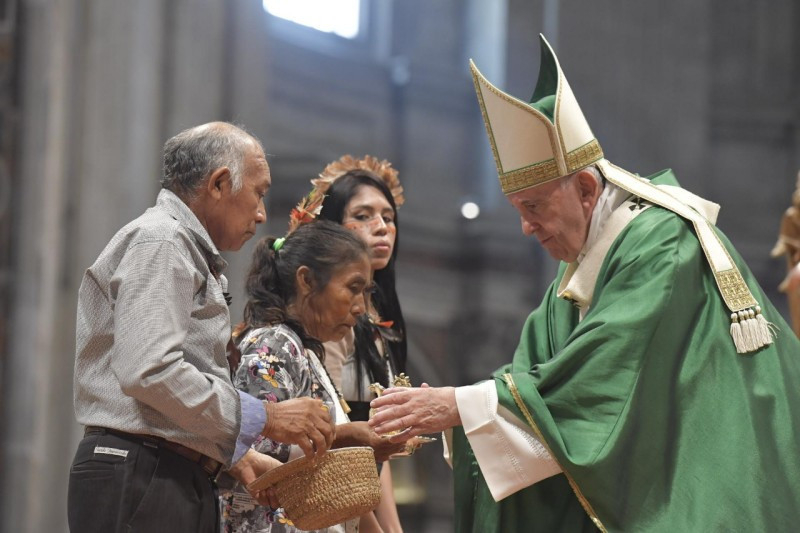 Kedves testvérek, nézzünk együtt a megfeszített Jézusra, az ő értünk átszúrt szívére! Onnan induljunk el, mert onnan fakadt ki az ajándék, mely szült minket; onnan áradt ki a megújulást adó Lélek (vö. Jn 19,30). Onnan érezzük – mindnyájan – meghíva magunkat arra, hogy életet adjunk! Az Amazonas-medencében élő sok fivérünk és nővérünk hordoz nehéz keresztet, és várja az evangélium felszabadító vigaszát, az Egyház simogató szeretetét. Az Amazonas-medencében élő sok fivérünk és nővérünk adta oda életét. Hadd ismételjem meg szeretett Hummes bíborosunk szavait: amikor megérkezik Amazóniának azokba a kis városaiba, elmegy a temetőkbe, hogy felkeresse a misszionáriusok sírját. Ez az Egyház gesztusa azok felé, akik életüket adták az Amazonas-medencében. Aztán egy kis ravaszsággal azt mondja a pápának: „Ne felejtsd el őket! Megérdemlik, hogy szetté avassák őket!” Értük, azokért, akik most áldozzák oda életüket, azokért, akik már feláldozták életüket, velük karöltve, járunk együtt!