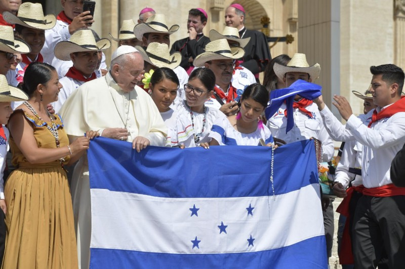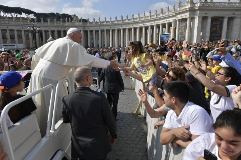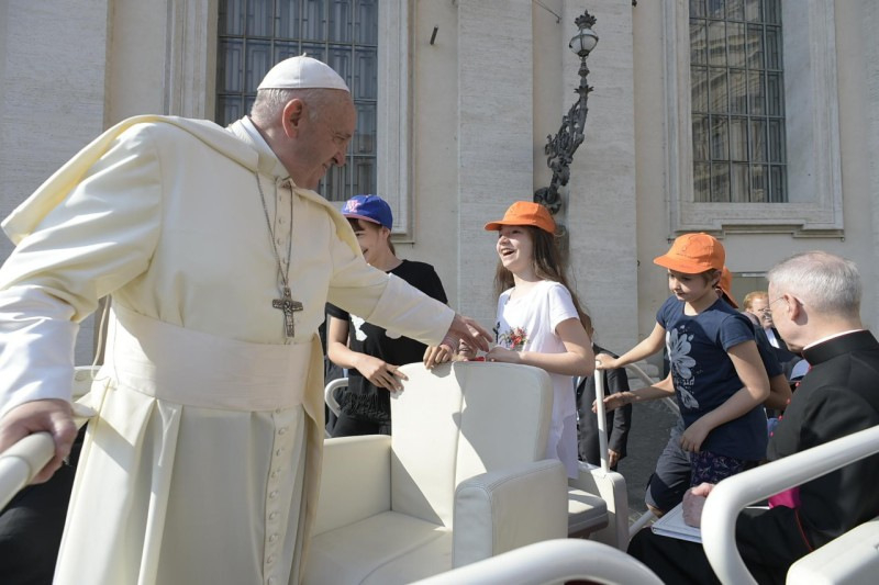 Szombaton, június 8-án lesz ötödik évfordulója annak, amikor itt, a Vatikánban az izraeli és a palesztin elnök találkozott velem és Bartholoméosz pátriárkával. 13 órakor tartsunk „egy perc csöndet a békéért”, amikor a hívők imában, a nem hívők pedig gondolatban mindnyájan közösen nyilvánítják ki egy testvériesebb világ iránti vágyukat. Köszönöm a nemzetközi Actio Catholicának, hogy ezt a kezdeményezést elindította!