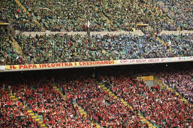 A mintegy 78 ezres hívősereg között volt 400 önkéntes és több mint ezer tizenéves a főegyházmegye plébániáin működő oratóriumokból. A találkozó a Ferenc pápára jellemző közvetlenség, evangéliumi jókedv légkörében zajlott. A fiatalok és a szentatya spontán párbeszédét sok taps és nevetés szakította meg. A találkozón, amelyet a Milánói Oratóriumok Alapítványa és az Actio Catholica gyermekrészlege szervezett, zene- és énekszámok, tanúságtételek, nagy hatású táncjelenetek váltották egymást.