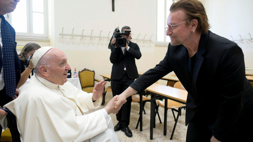 A találkozón jelen volt a U2 ír popegyüttes frontembere, Bono Vox (Paul David Hewson), aki megköszönte a szervezőknek, hogy részt vehetett a Laudato si’ iskolájában, a találkozás kultúrájának előmozdításáért, valamint azért, hogy Ferenc pápa nemzetközi nevelői mozgalommá emelte a Scholas-hálózatot. Bono kérdésére válaszolva Ferenc pápa kiemelte, hogy általában anyaföldről, nem apaföldről szokás beszélünk. „A nőknek természetes adottságuk van a dolgok megváltoztatására” – szögezte le a Szentatya, utalva a Teremtés könyvének első fejezeteire.