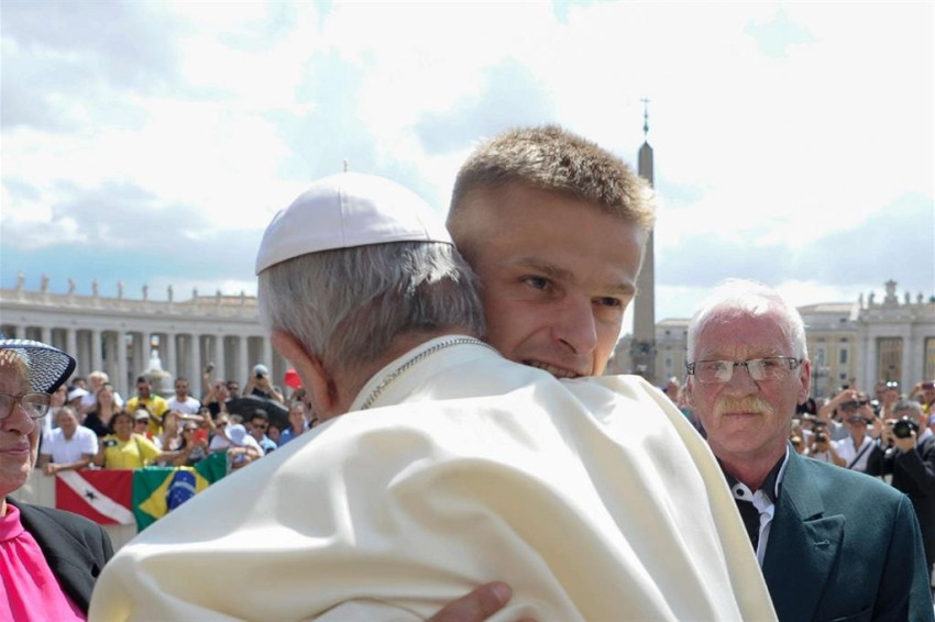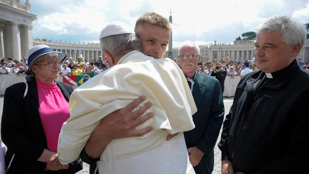 Konrad Krajewski érsek hallott Tomasz Komenda történetéről és meghívta a családot az általános kihallgatásra. Sikerült Ferenc pápa közelébe kerülniük, és röviden elmesélték neki Tomasz történetét. A pápát megrendítette, hosszan megölelte a férfit, rózsafüzért ajándékozott a családnak, és kérte a fényképészt, örökítse meg a pillanatot. „A pápa ölelése és szavai egy új élet kezdete, bátorságot ad. Segít, hogy újra éljek és a pokolban töltött 18 év a megváltás forrása legyen” – mondta el Tomasz a vatikáni médiának.