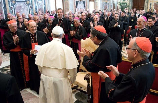 Beszéde végén Ferenc pápa a Rózsafüzér Királynője oltalmába ajánlotta a Papi Kongregáció nemzetközi konferenciájának a résztvevőit.