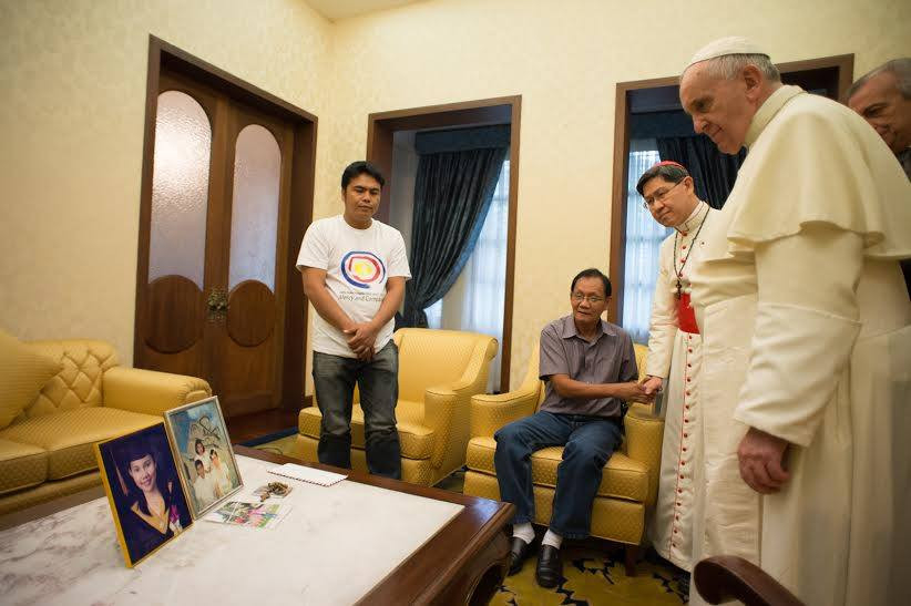 A beszélgetés húsz percig tartott, Tagle bíboros, Manila érseke tolmácsolt. Az asztalon elhelyeztek két képet az elhunyt lányról: az egyiken fiatal lányként, a másikon kisgyermekként látható a szüleivel – tájékoztatott Federico Lombardi, szentszéki szóvivő.