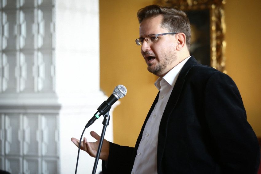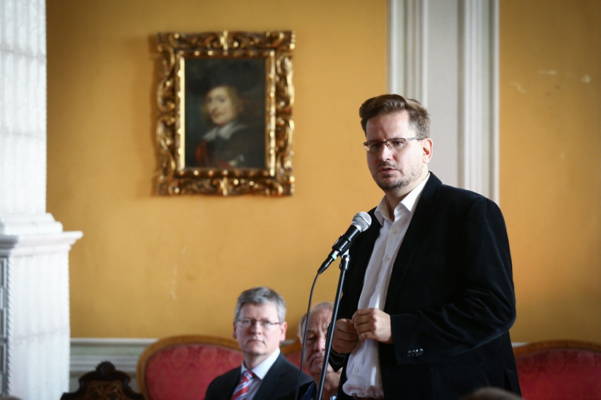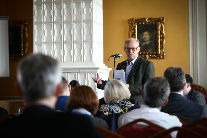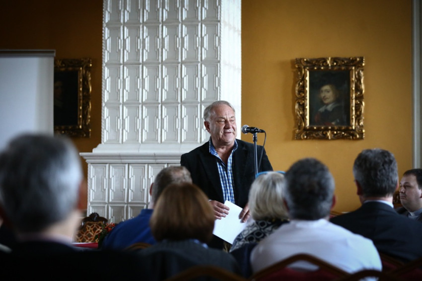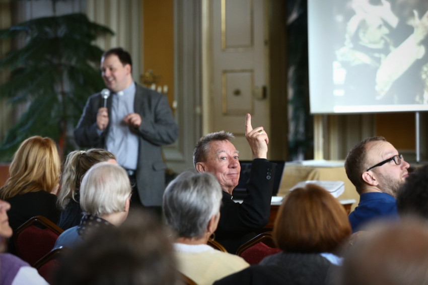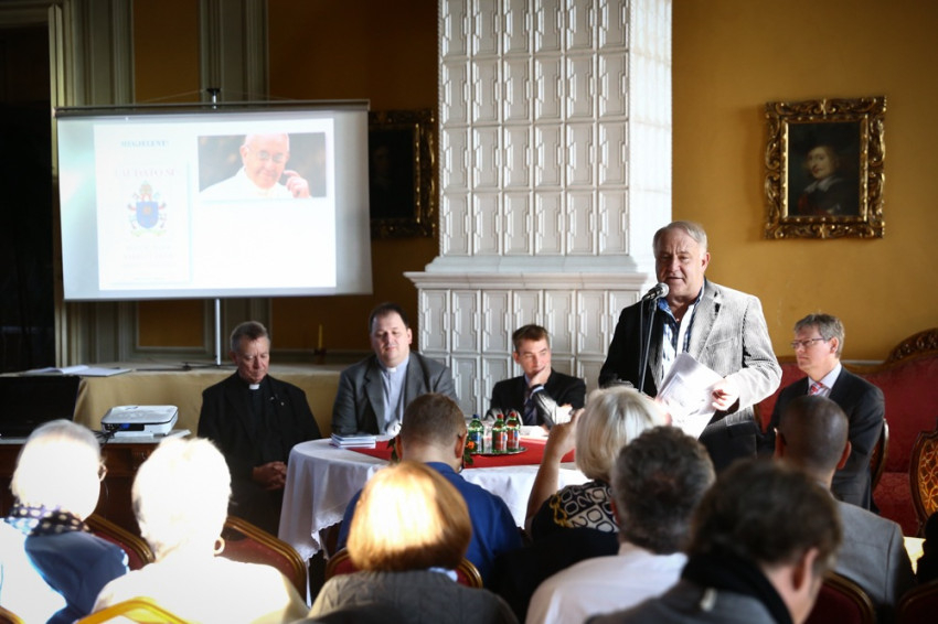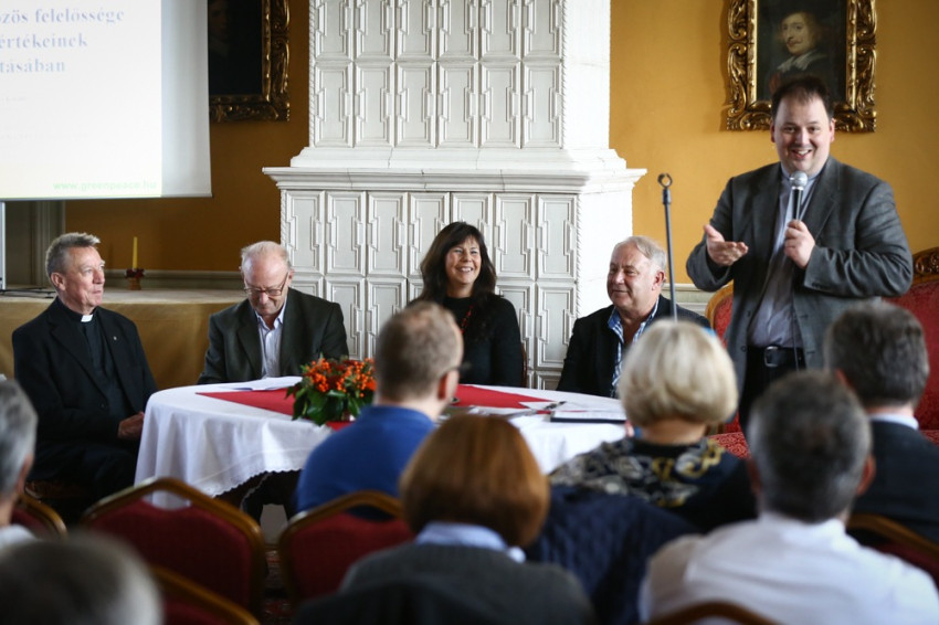 Hegyi Gyula újságíró köszöntőjében elmondta, hogy a Ferenc pápa tanítása iránti tisztelet hozta össze egymással az előadókat: püspököt, teológust, hívő és nem hívő világi gondolkodókat.
