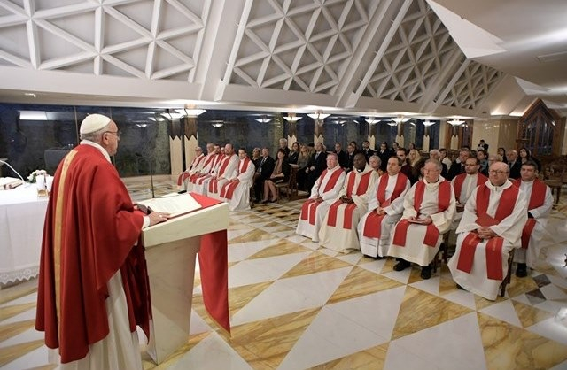 A napi olvasmány a Makkabeusok első könyvéből (1Mak 4,36–37.52–59), valamint az evangéliumi szakasz Szent Lukács könyvéből (Lk 19,45–48) egyaránt a templom megtisztításáról szól. Ahogyan Júdás és testvérei újraszentelik a pogányok által megszentségtelenített templomot, úgy Jézus kikergeti a kufárokat az Úr házából, amelyet rablók barlangjává tettek. A kérdés az, hogyan lehet megtisztítani Isten templomát. Az éberségen, a szolgálaton és az ingyenességen keresztül – mutatott rá a Szentatya.