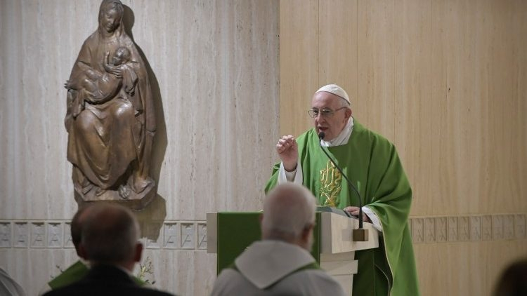 Nem azt kérdezem, hogy mi a te bűnöd, vagy az enyém. Azt kérdezem, hogy benned él-e egy bálvány vagy a pénz istene. Mert amikor bűn van benned, az irgalmas Isten megbocsát, ha hozzá fordulsz. De ha egy másik úr lakozik ott, a pénz istene, akkor bálványimádó vagy, vagyis romlott. Nemcsak bűnös, hanem romlott – nyomatékosította a pápa. A korrupció lényege a bálványimádás: az, hogy eladod a lelked a pénzistennek, a hatalom istenének. Ez a bálványimádás – figyelmeztetett reggeli homíliája végén Ferenc pápa.
