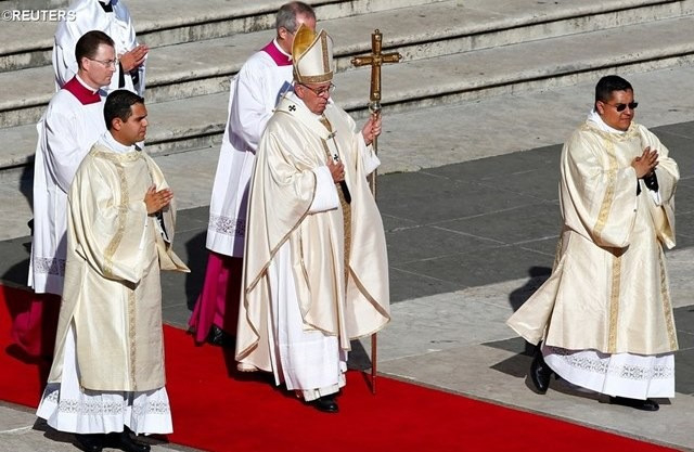A szentek olyan férfiak és nők, akik egészen behatolnak az ima misztériumába. Olyan férfiak és nők, akik az imádsággal küzdenek, engedik, hogy a Szentlélek imádkozzon és küzdjön bennük, a végsőkig harcolnak, minden erejükkel, és győznek, de nem egyedül: az Úr győz bennük és velük. Ez a hét tanúságtevő is, akiket ma szentté avattunk, az imával harcolták meg a hit és a szeretet jó harcát. Ezért szilárdak maradtak a hitben, nagylelkű és hűséges szívvel. Példájuk által és közbenjárásukra Isten nekünk is adja meg, hogy az ima emberei legyünk, hogy éjjel-nappal kiáltsunk Istenhez anélkül, hogy belefáradnánk, hogy hagyjuk a Szentlelket imádkozni bennünk, és hogy támogassuk egymást az imádságban, hogy karunk kitárt maradjon, míg ki nem vívja a győzelmet az Isteni Irgalmasság.