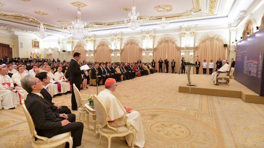 A pápa üdvözölte annak az etikai-társadalmi bizottságnak a felállítását, melybe meghívták az ország hagyományos vallásainak képviselőit, hogy értékeikkel tartsák ébren a nemzet spirituális emlékezetét. Ennek jegyében találkozik majd a Szentatya a legfőbb buddhista pátriárkával, a barátság és a vallásközi párbeszéd elősegítésének szándékával, mely a társadalmi egységet, az igaz, érzékeny és befogadó társadalom építését szolgálja.