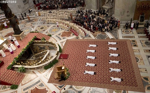 Kedves testvéreim! Ezek a fiaink és fivéreink a papi rendre kaptak meghívást. Amint azt jól tudjátok, az Úr Jézus az Újszövetség egyetlen Főpapja, de Őbenne Isten egész szent népe részesül a papi hivatásban. Mindazonáltal az Úr Jézus tanítványai közül néhányat kiválaszt arra, hogy az egyházban nyilvánosan, nevében gyakorolva a papi szolgálatot minden ember javára, folytassák személyes küldetését, mint tanító, mint pap, és mint pásztor. Érett megfontolás után most a papi rend szentségére emeljük ezeket a fivéreinket, hogy Krisztus, a Mester, a Főpap és a Legfőbb Pásztor szolgálatában együttműködjenek Krisztus Testének építésében, amely az Isten népének az egyháza és a Szentlélek temploma – mondta homíliájában Ferenc pápa. Ők Krisztushoz, az Örök Főpaphoz lesznek hasonlóvá, vagyis elnyerik az Újszövetség igazi papi rendjét, és ezen a jogcímen, amely a papságban püspökükhöz kapcsolja őket, az evangélium hirdetői, Isten népének pásztorai lesznek, vezetik az istentiszteleti szertartásokat, különös tekintettel az Úr áldozatának bemutatására – mondta el a Szentatya.