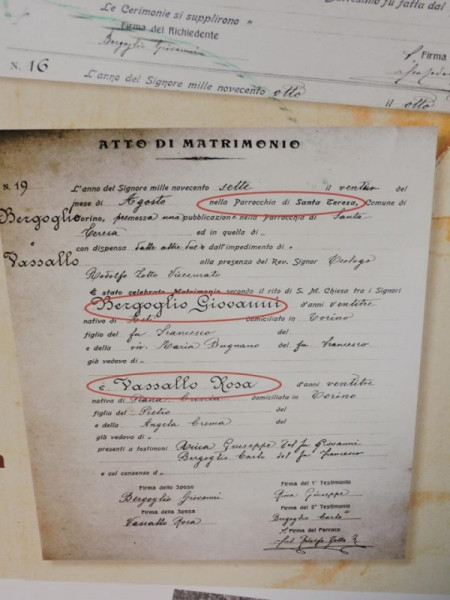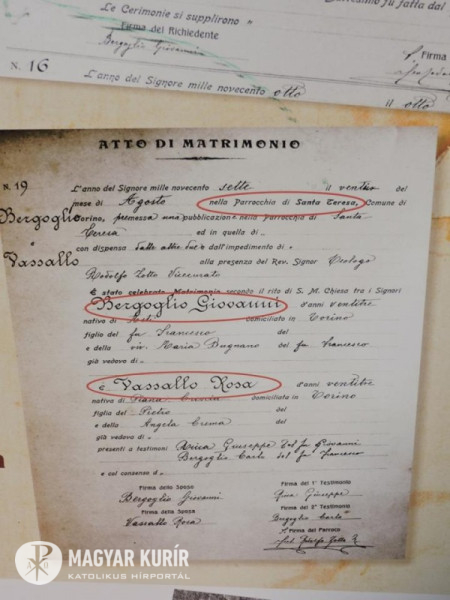 Ferenc pápa nagyszüleinek házassági anyakönyvi kivonata