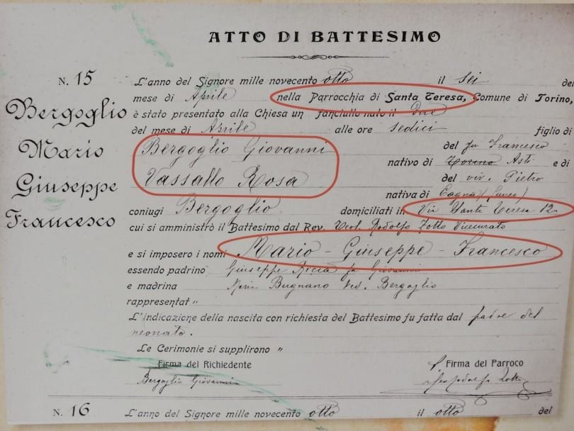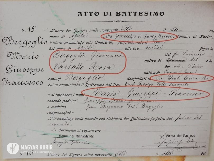 Ferenc pápa édesapjának a születési anyakönyvi kivonata