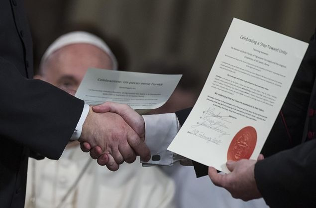Katolikusok és anglikánok arra kaptak meghívást, hogy haladjanak együtt a szeretet közös tanúságtétele révén, amellyel láthatóvá teszik Jézus irgalmas arcát. Adjunk hálát az Úrnak, amiért a keresztények között megnőtt a közeledés vágya, ami megmutatkozik a közös imádságban és az evangéliumról tett közös tanúságtételben, főként a szolgálat különböző formáiban. Ahol a nevében összegyűlnek az emberek, ott jelen van Jézus, és irgalmas tekintetével azt kéri, hogy az egységért és a szeretetért munkálkodjunk – fogalmazott a szentatya.