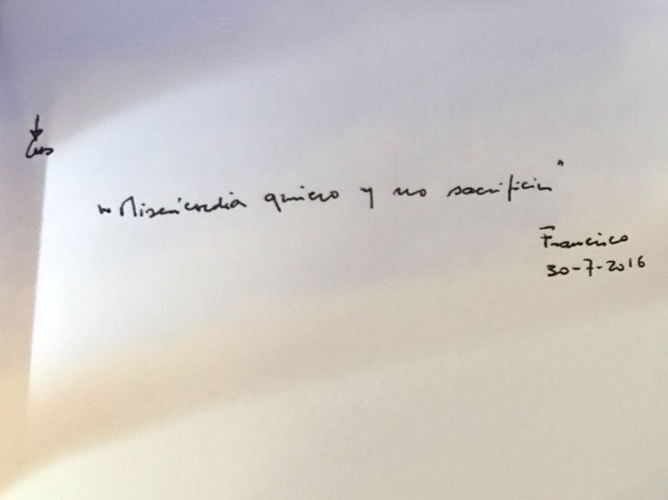 (Ferenc pápa ezeket a szavakat jegyezte be az Isteni Irgalmasság Szentélyének emlékkönyvébe július 30-án – a szerk.)