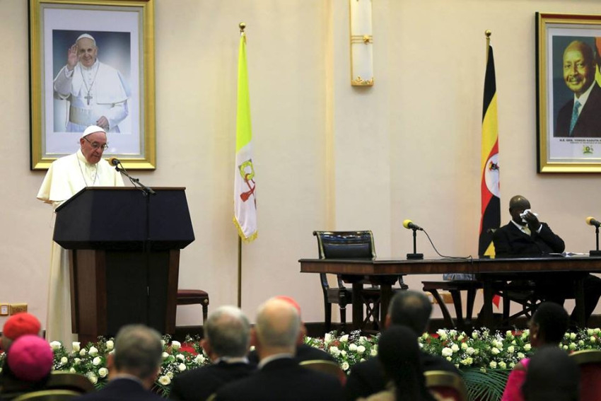 A háborúk, erőszak és igazságtalanságok sújtotta mai világunkban a népvándorlás eddig ismeretlen mértéket öltött. Az, ahogyan szembenézünk ezzel a jelenséggel, emberségünk szakítópróbája. Arról árulkodik, hogy tiszteletben tartjuk-e az emberi méltóságot és hogy szolidárisak vagyunk-e rászoruló testvéreinkkel – mutatott rá a Szentatya, majd a szegények, a betegek és a nehéz helyzetben lévők megsegítésére biztatta az ugandaiakat, és aggodalommal szólt a „selejtezés kultúrájá”-nak globalizációjáról, amely vakká tesz minket a lelki értékekkel szemben, megkeményíti szívünket a szegények szüksége láttán, és megfosztja fiataljainkat a reménytől.