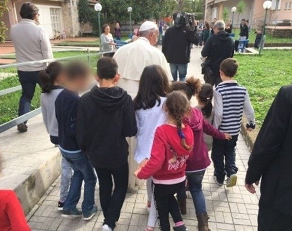 A gyerekek megmutatták a Szentatyának szobáikat, játékaikat, Ferenc pápa meghallgatta történeteiket, elbeszélgetett velük, és elfogadva meghívásukat velük uzsonnázott.