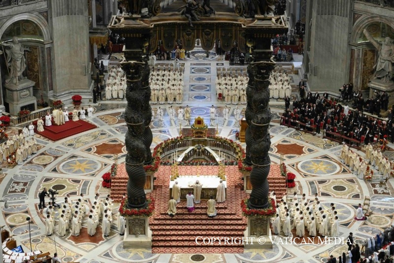 Isten szent anyja! Isten szent népének ez az örömteli kiáltása hangzott fel Efezus utcáin 431-ben, amikor a zsinati atyák kijelentették, hogy Mária Isten anyja. Ez hitünknek az egyik lényegi része, de mindenekelőtt gyönyörű hír: Istennek van anyja, s így örökre hozzá van kötve emberségünkhöz, mint gyermek az anyjához, olyannyira, hogy emberségünk az ő embersége. Ez egy olyannyira megrázó és vigasztaló igazság, hogy az itt [Rómában] tartott legutóbbi zsinat kijelentette: