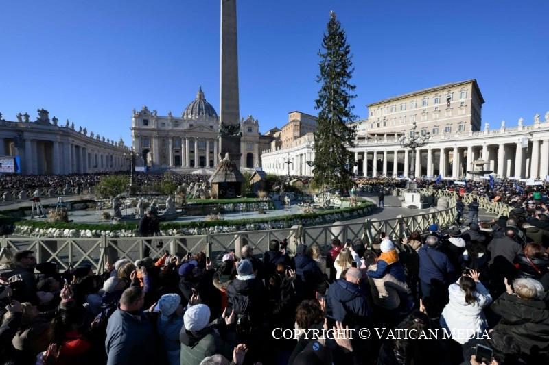 Ezeknek a gondolatoknak a fényében mindannyian megkérdezhetjük magunktól: képes vagyok-e szótlanul szemlélni Jézus születését? Igyekszem-e megőrizni szívemben ezt az eseményt, a jóság és az üdvösség üzenetét? Tudom-e viszonozni ezt a nagy ajándékot a békének, a megbocsátásnak, a kibékülésnek az önzetlen gesztusával? Mindannyian találunk valami tennivalót, és ez javunkra válik.