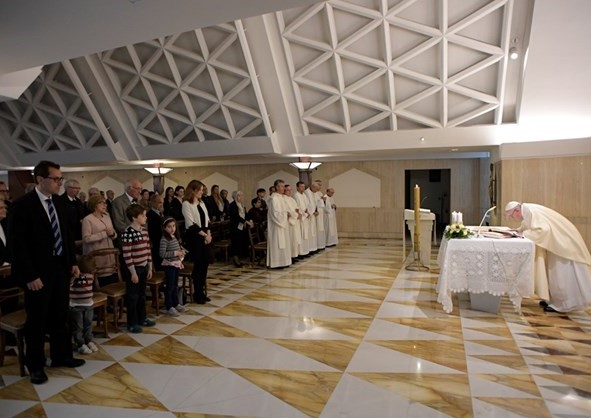 Amikor gyónunk, tegyük fel a kérdést: a vétkeink miatti szégyenen túl megértjük-e, hogy az a lépés, amit teszünk, egy lépés az úton az idők teljessége felé? Istentől bocsánatot kérni nem automatikus dolog – figyelmeztetett a pápa. – Meg kell értenünk, hogy úton vagyunk, úton lévő nép vagyunk, és egy nap – talán ma, holnap vagy harminc év múlva – szemben találjuk magunkat az Úrral, aki sosem hagy minket magunkra, hanem elkísér az úton. Gondoljunk erre! Amikor gyónni megyünk, gondolunk-e erre? És arra, hogy úton vagyunk? Hogy egy lépés ez az Úrral való találkozás felé, a mi időnk teljessége felé? Ez Isten irgalmasságának nagy műve – zárta homíliáját Ferenc pápa.