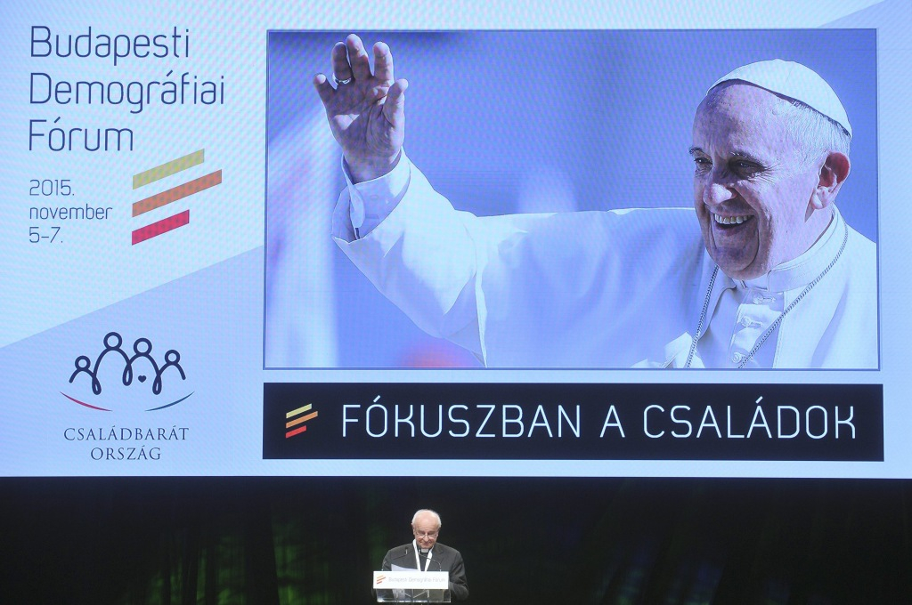 Őszentsége Ferenc pápa örömmel értesült a 2015. november 5. és 7. között megrendezésre kerülő Budapesti Demográfiai Fórum elnevezésű rendezvényről, és szívélyes üdvözletét küldi a Kormánynak, valamint a civil és egyházi szervezeteknek, melyek összegyűltek erre a fontos eseményre. Amint a Fórum résztvevői elgondolkodnak a család szerepén, mely alapvető fontosságú az igazságos és egészséges társadalom előmozdításában, Őszentsége biztosítja a jelenlévőket imádságos támogatásáról. Arra bátorítja a résztvevőket, vegyék fontolóra, milyen konkrét módon lehet támogatni a családok életét, különös tekintettel arra, hogy mennyi kihívással állnak szemben a családot alapító, illetve gyermekeiket nevelő párok. Ferenc pápa ezen gondolatok jegyében örömmel küldi áldását mint a bölcsesség és erő biztosítékát mindazok számára, akik összegyűltek.