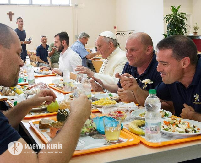 Végül megáldott bennünket, és közös fénykép is készült, majd eltávozott. Mindössze egy órácskát volt velünk. Olyan meglepetés volt, mint derült égből a villámcsapás! Ki gondolta volna? A pápa hozzánk jön ebédelni? Mindnyájan meglepődtünk, de az egyik legszebb élmény volt, ami az életben csak ritkán fordul elő” – nyilatkozta a Vatikáni Rádiónak Franco Paìni, a vatikáni menza konyhafőnöke.