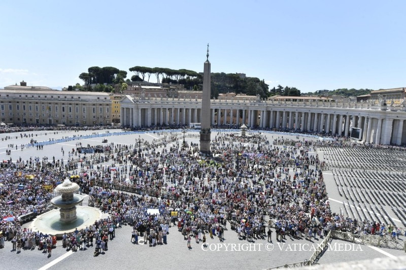 Köszöntelek mindannyiatokat, rómaiak, Olaszországból és más országokból érkezett zarándokok! Külön is köszöntöm a kolumbiai Bogotából jött híveket.