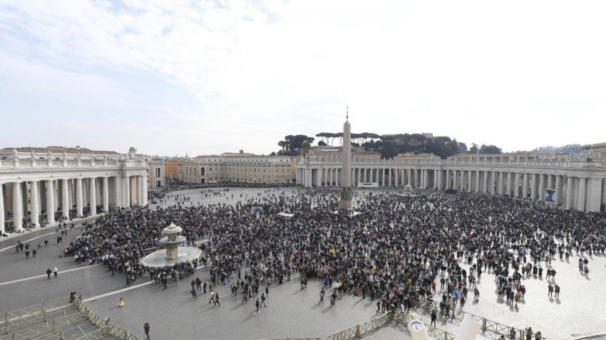 Az Ukrajnából érkező hírek nagyon aggasztóak. Szűz Mária közbenjárására és a politikai vezetők lelkiismeretére bízok a békéért tett minden erőfeszítést. Imádkozzunk csendben!