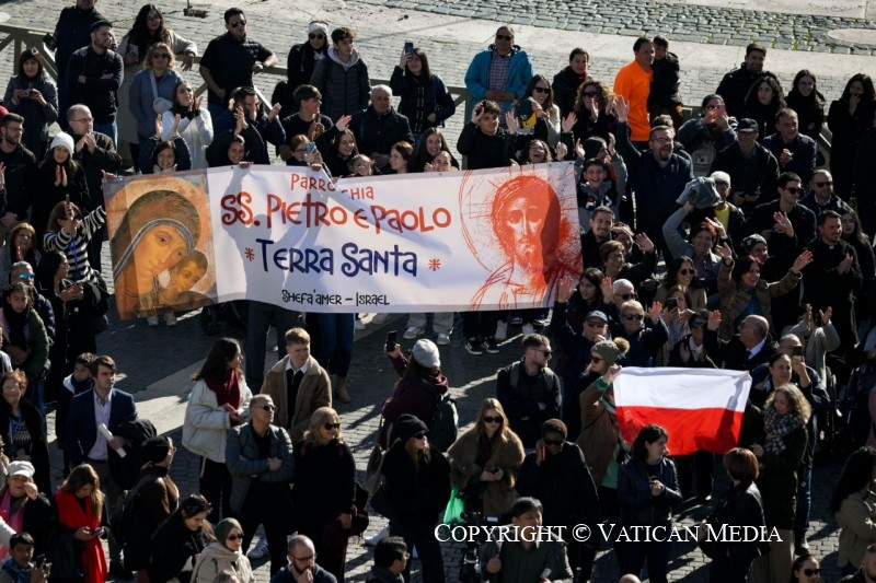 Szeretettel üdvözöllek mindnyájatokat, rómaiak és zarándokok! Külön is üdvözlöm a Máltáról, Izraelből, Szlovéniából és Spanyolországból, valamint a mostar–duvnói és a trebinje–mrkani egyházmegyékből, valamint a Fossanova apátságának területéről érkezett hívek csoportjait.