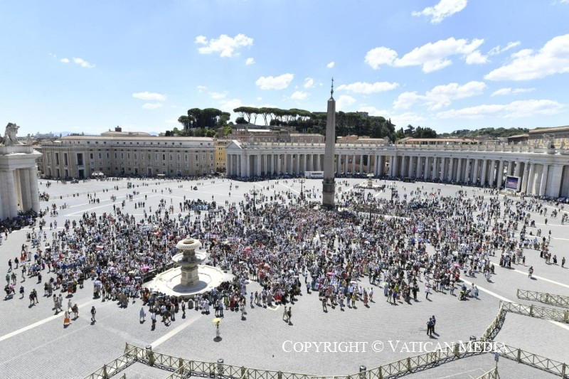 Köszöntöm a lisszaboni Szent Tamás Iskolából érkezett csoportot és a portugáliai Viseu-ből érkezett hívőket; a „Siempre así” kórust Spanyolországból, a berlini érsekség fiataljait és a Bergamo melletti Bolgaréből jött bérmálkozó fiatalokat. Üdvözlöm a lengyel zarándokokat, és üdvözlöm a Mária Rádió családja éves zarándoklatának résztvevőit, akik a częstochowai kegyhelyre zarándokolnak. Üdvözlöm továbbá a különböző országokból érkezett papokat, akik a római Sacerdos Intézet által szemináriumi nevelőknek szervezett kurzuson vesznek részt.