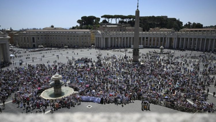 Ma az első római vértanúkra emlékezünk. Mi is a vértanúság korát éljük, még inkább, mint az első századok. A világ számos táján sok testvérünk szenved hátrányos megkülönböztetést és üldözést hitük miatt, s ezáltal megtermékenyítik az Egyházat. Mások „fehér kesztyűben” érkező vértanúsággal néznek szembe. Támogassuk őket, és merítsünk ihletet Krisztus iránti szeretetük tanúságtételéből!