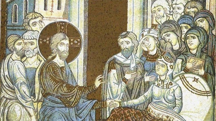 A mai liturgia evangéliuma két csodáról szól, melyek látszólag összefonódnak. Amikor Jézus Jairusnak, a zsinagóga egyik elöljárójának házához megy, akinek a kislánya súlyos beteg, útközben egy vérfolyásos asszony megérinti a ruháját, ő pedig megáll, hogy meggyógyítsa. Közben az a hír érkezik, hogy Jairus lánya meghalt, Jézus azonban nem áll meg, hanem elmegy a házhoz, bemegy a kislány szobájába, megfogja a kezét, felsegíti, visszahozza az életbe (Mk 5,21–43). Két csoda, az egyik gyógyítás, a másik feltámasztás.