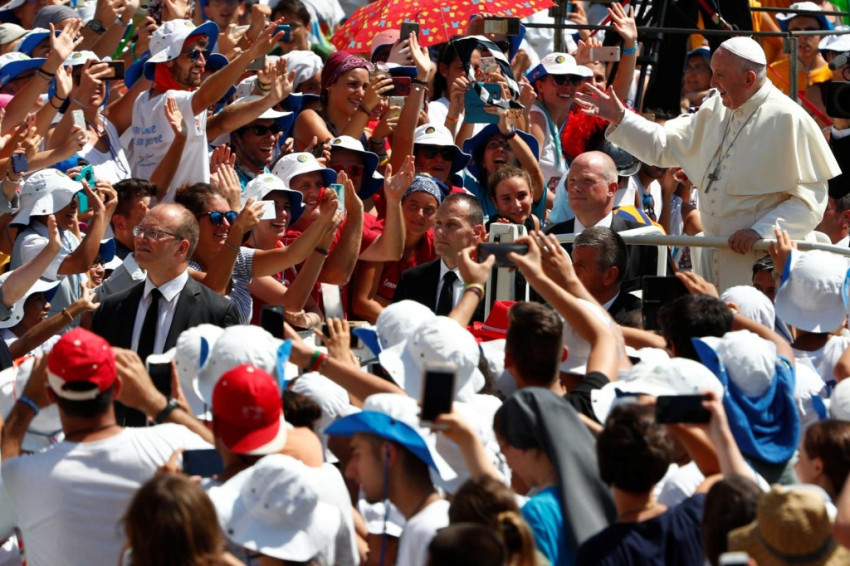 Külön is köszöntöm az olasz egyházmegyék fiataljait, akiket elkísértek püspökeik, papjaik, tanáraik, nevelőik. Ezekben a napokban elárasztottátok Róma utcáit lelkesedésetekkel és hitetekkel. Köszönetet mondok jelenlétetekért és keresztény tanúságtételetekért! Tegnap [a közös imavirrasztás végén], amikor köszönetet mondtam, elfelejtettem szólni a papokhoz, akik a legközelebb állnak hozzátok: nagyon hálás vagyok a papoknak, hálásan köszönöm a nap nap után végzett munkájukat, köszönöm a türelmüket, hiszen türelemre van szüksége annak, aki veletek dolgozik! A papok türelme… hálásan köszönöm, nagyon hálás vagyok!!! Láttam, hogy sok szerzetesnővér is dolgozik veletek: a nővéreknek is szívből köszönöm!