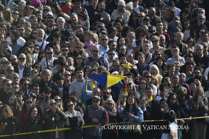 Kérlek benneteket, továbbra is imádkozzunk a meggyötört Ukrajnáért, ahol kórházakat és más polgári épületeket is támadás ért; és imádkozzunk Palesztináért, Izraelért, Libanonért, Mianmarért, Szudánért! Imádkozzunk a békéért az egész világon!